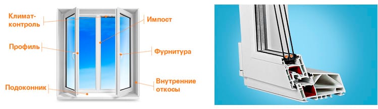 Окна ПВХ обладают огромным количеством преимуществ — высокой шумоизоляцией, высокой проводимостью света, не промерзают, позволяют сократить теплопотери на 40-60% Около 40% тепла теряется именно из-за зазоров, образовавшихся в связи с деформацией старой оконной конструкции или в результате недоработки строителей, из-за рамы, неподходящей для нестандартного размера проема и т.д. Поэтому установка пластикового окна позволят забыть о регулярной заботе об утеплении помещений, о покупке дополнительных обогревателей и о других мерах по повышению температуры. Техническое устройство окнаПомимо обычной тепловой потери сквозь щели и трещины, большое количество тепла уходит из-за способности дерева «дышать», то есть по причине его пористой структуры. Пластиковые же окна имеют более герметичный состав материала. Если в деревянных окнах воздушная камера образуется двумя стеклами, удаленными друг от друга (считалось, что расстояние между ними влияет на значение теплопроводности), то в пластиковых конструкциях большую роль играет устройство дистанционной рамки и профиля. Профиль это конструкция для изготовления оконной рамы, выполненная из поливинилхлорида (ПВХ), полая внутри и состоящая из определенного количества камер. Количество камер варьируется от одной до пяти. Больше всего распространены трехкамерные профильные оконные системы. Камеры обычно заполнены высушенным воздухом или инертным газом (аргон, криптон).